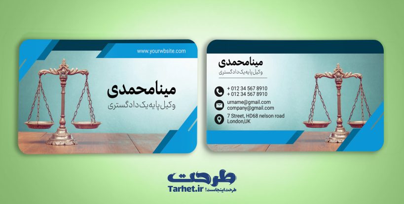 در این قسمت فایل لایه باز کارت ویزیت وکیل با رنگ بندی خاص و متناسب با صنف مورد نظر جهت ویرایش در نرم افزار فتوشاپ قرار گرفته است و شما می توانید این طرح را   کاملا لایه باز، به صورت psd  با رزولیشن 300 dpi در ابعاد 709*1063 پیکسل که مناسب جهت چاپ و پرینت برروی انواع کاغذ می باشد خریداری نمایید و پس اجرا در نرم افزار فتوشاپ به صورت ساده اقدام به ویرایش و سفارش سازی کنید.