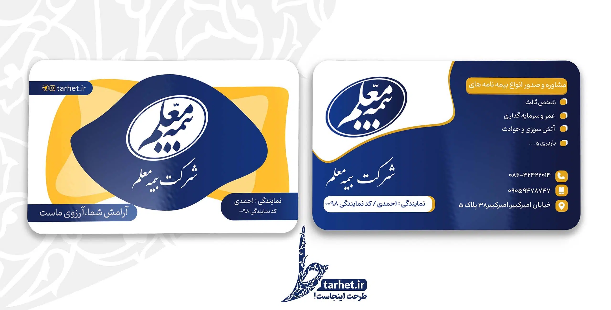 کارت ویزیت لایه باز بیمه معلم برای دانلود در اختیار شما قرار گرفته است، طراحیای مدرن و مناسب کسب و کارهای ایرانی است.